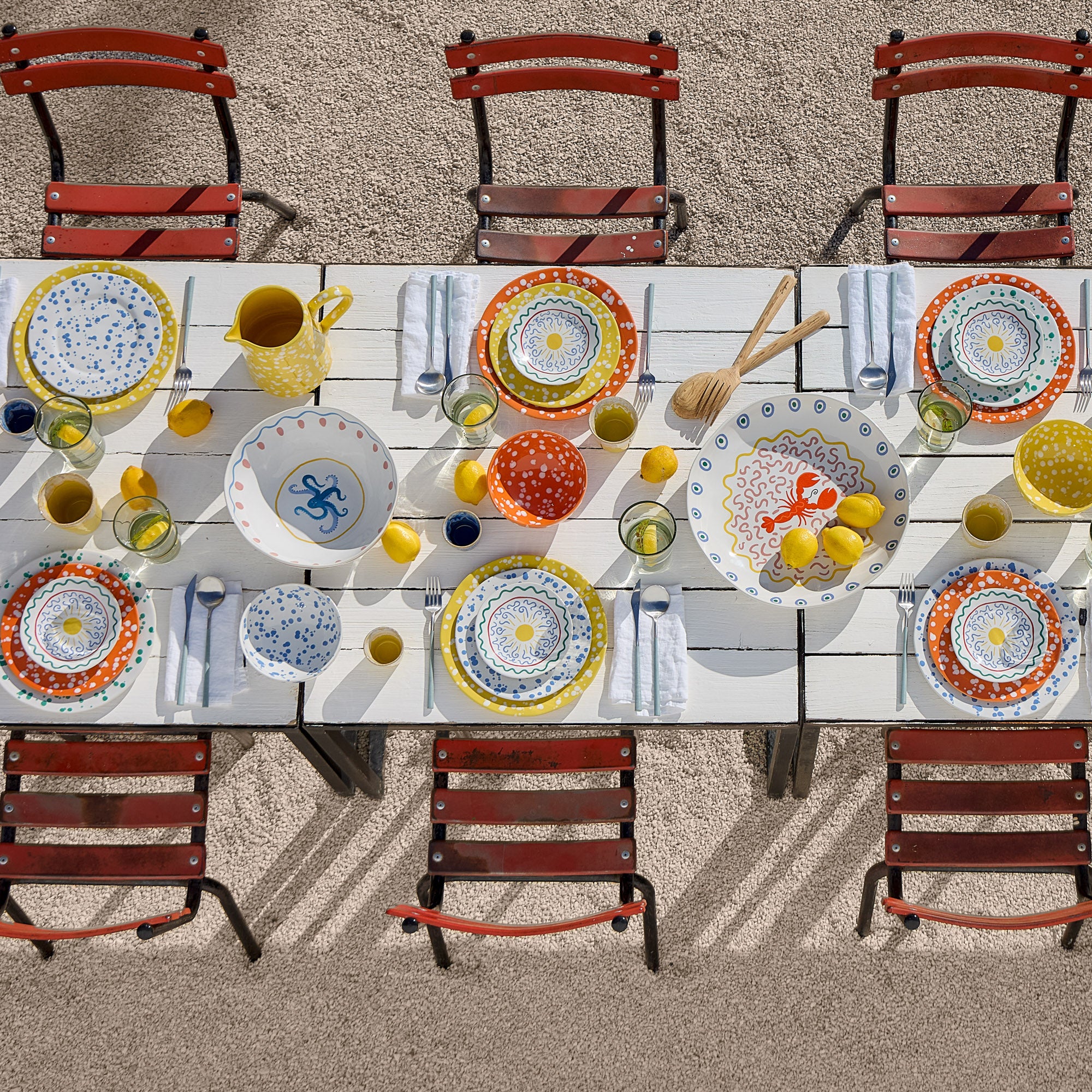 Brighten your kitchen and table with the playful charm of the Rafaela collection. Each hand-applied splash of paint adds a unique, carefree touch to every meal. Available in four bold colors, Rafaela pieces are perfect for mixing and matching or adding a pop of personality to any table setting. From dinner, appetizer, and salad plates to versatile oven-to-table bakers, this collection transforms everyday dining into a vibrant, memorable experience. The technique used to decorate Rafaela demands the artisan’s full attention and precise, delicate gestures. Each handmade splash is carefully poured onto the piece, making every item truly one of a kind. Perfect to combine with Summer Bliss pieces. Fine stoneware. Made in Portugal.