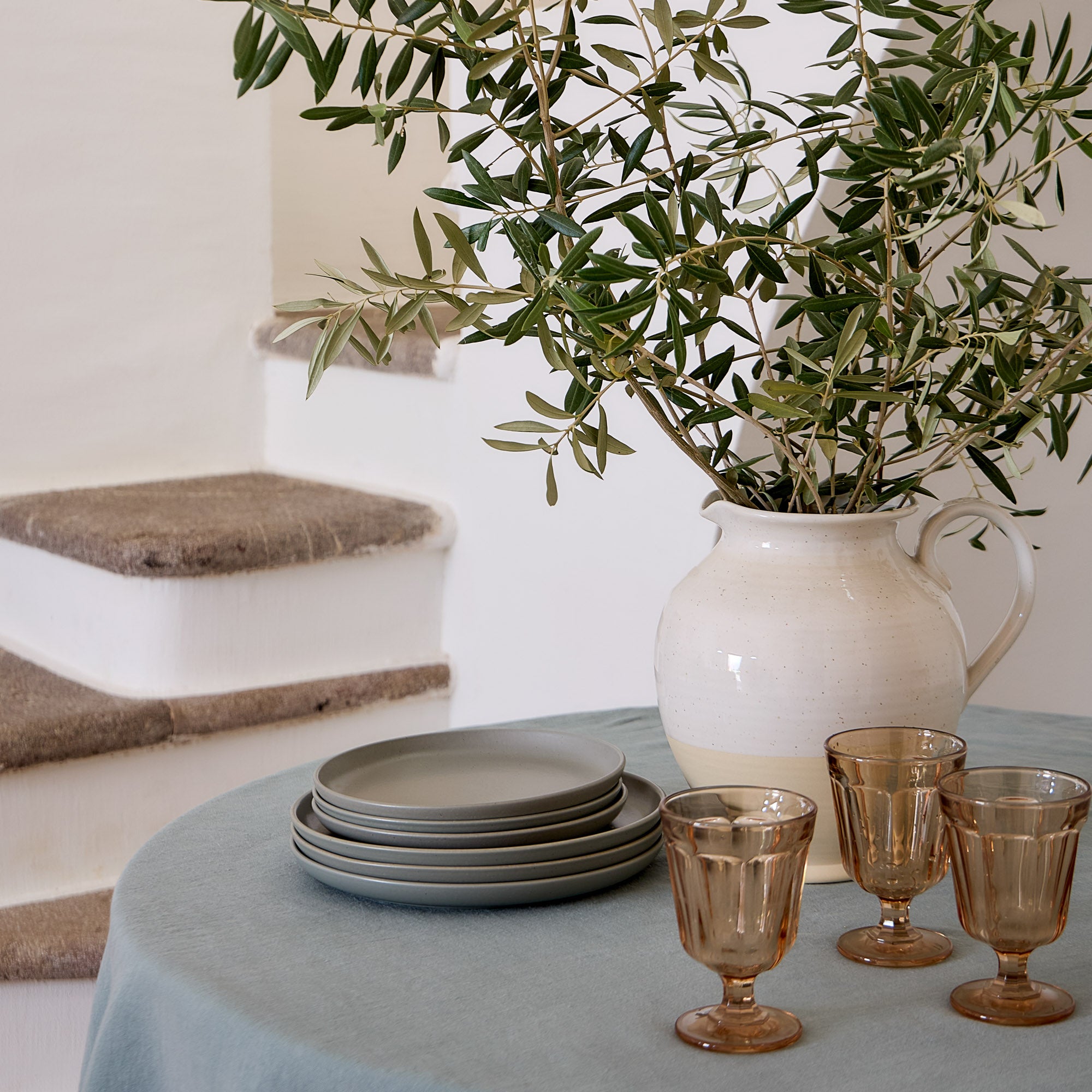 Available in a selection of soft pastel tones, such as Vanilla (beige), Marshmallow (pink), Monterosa (beige and brown), Oyster Grey (grey), Chestnut (light brown), Salt (white), and Artichoke (green), as well as more intense shades like Cayenne (red) and Seed Grey (grey). Additionally, the collection offers seasonal options, such as Christmas Tree (beige with a festive motif). These tones bring a calm, harmonious vibe to the table. Use the soft colors alone for a nostalgic, romantic feel, or combine them for a cozy, comforting setting.