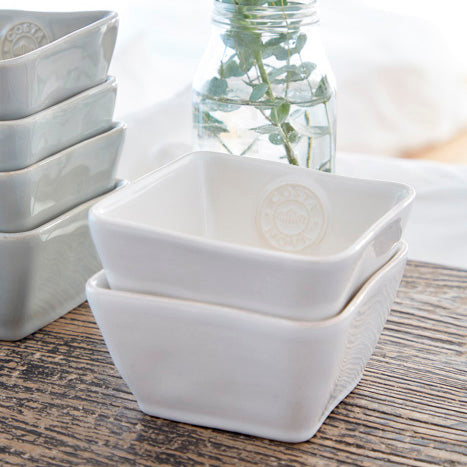Available in white, gray, denim, and turquoise, the Nova collection offers a diverse selection of tableware, bakeware and serveware, including dinnerware sets, centerpieces, mugs, dinner plates, bakers, serving platters and more. No piece is perfectly round, reflecting the organic shapes that characterize this collection.