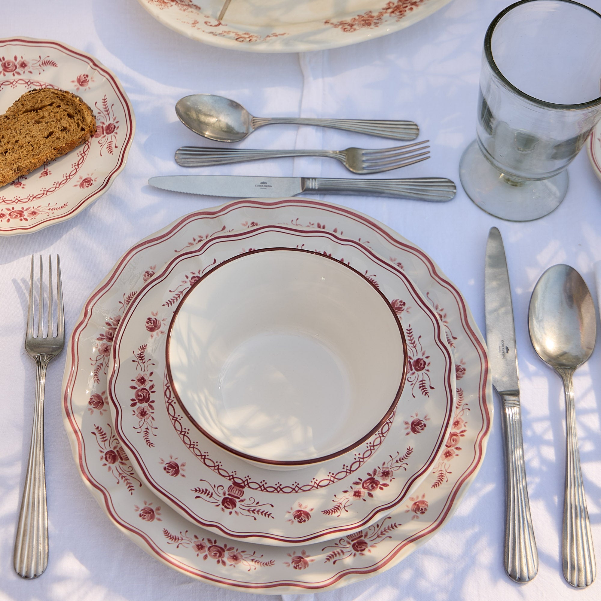 Available with a rim in blue, cream, and red, these traditional colors are inspired by the architectural landscape of the city of Beja and the charm of old enameled collections.