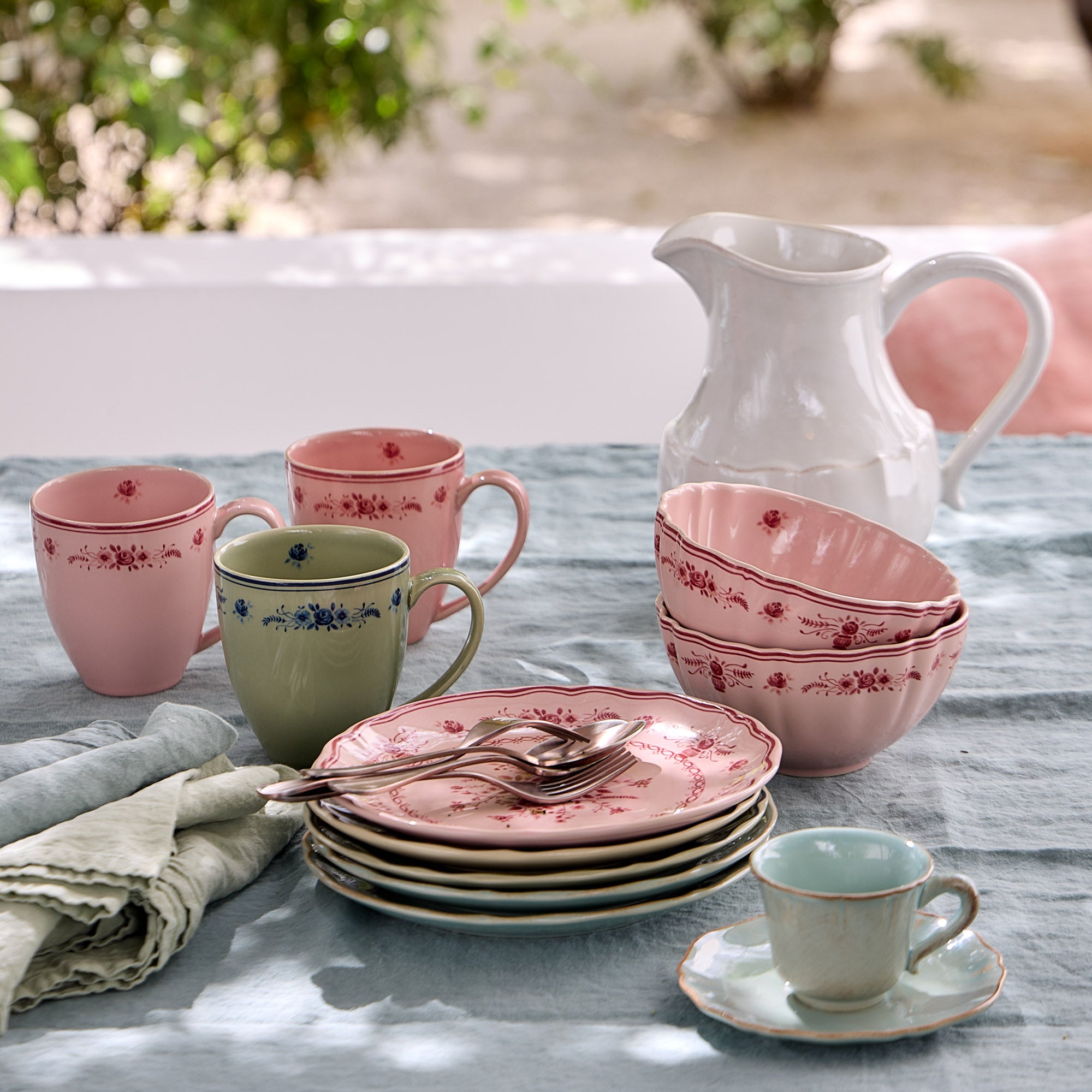 Inspirée par l’esprit romantique de la fin du XIXᵉ siècle au Portugal, la collection Vila rend hommage au charme délicat de la faïence florale traditionnelle. À l’époque, les motifs floraux ornaient des pièces en céramique reflétant la chaleur et l’intimité des foyers portugais : simples, mais réalisées avec un grand soin.