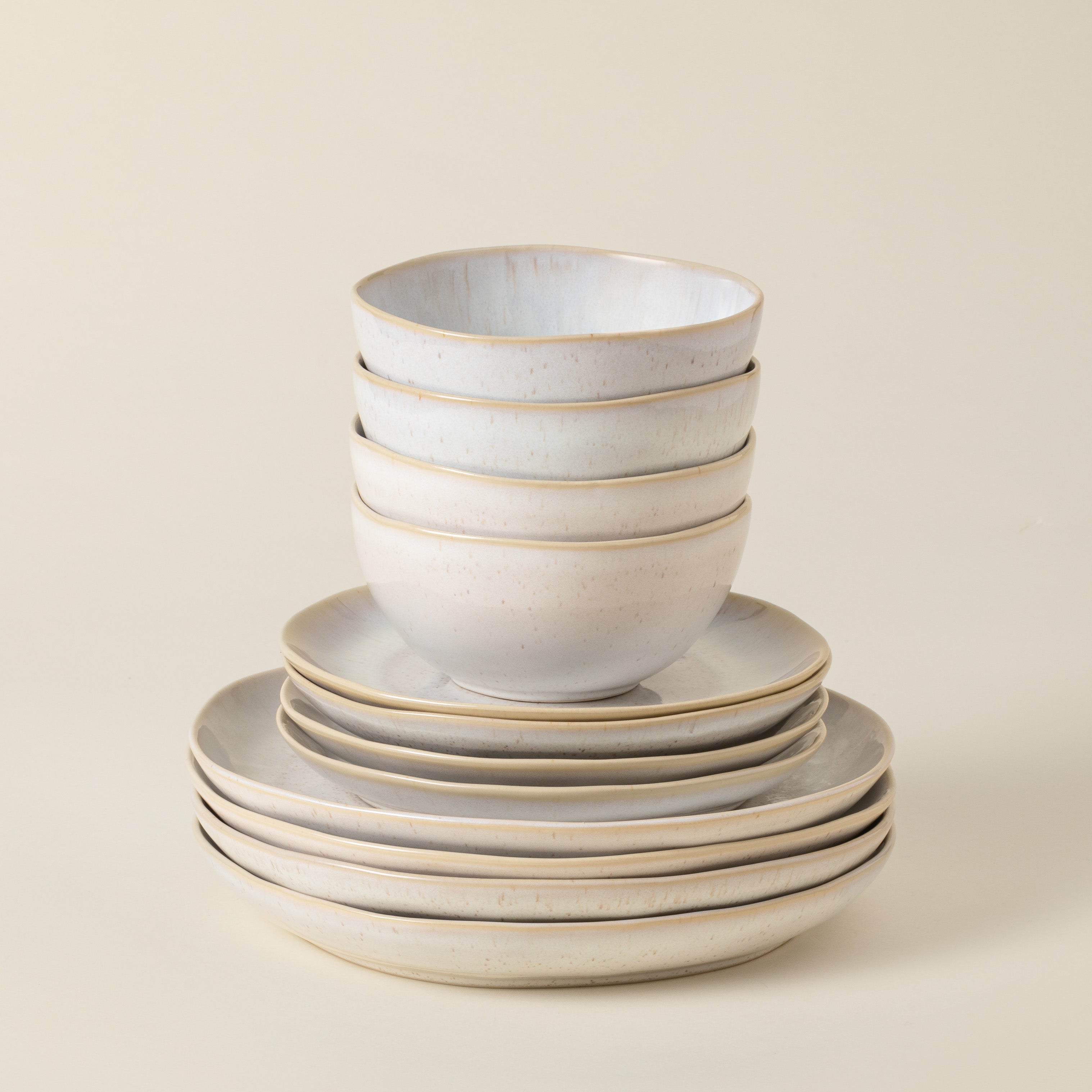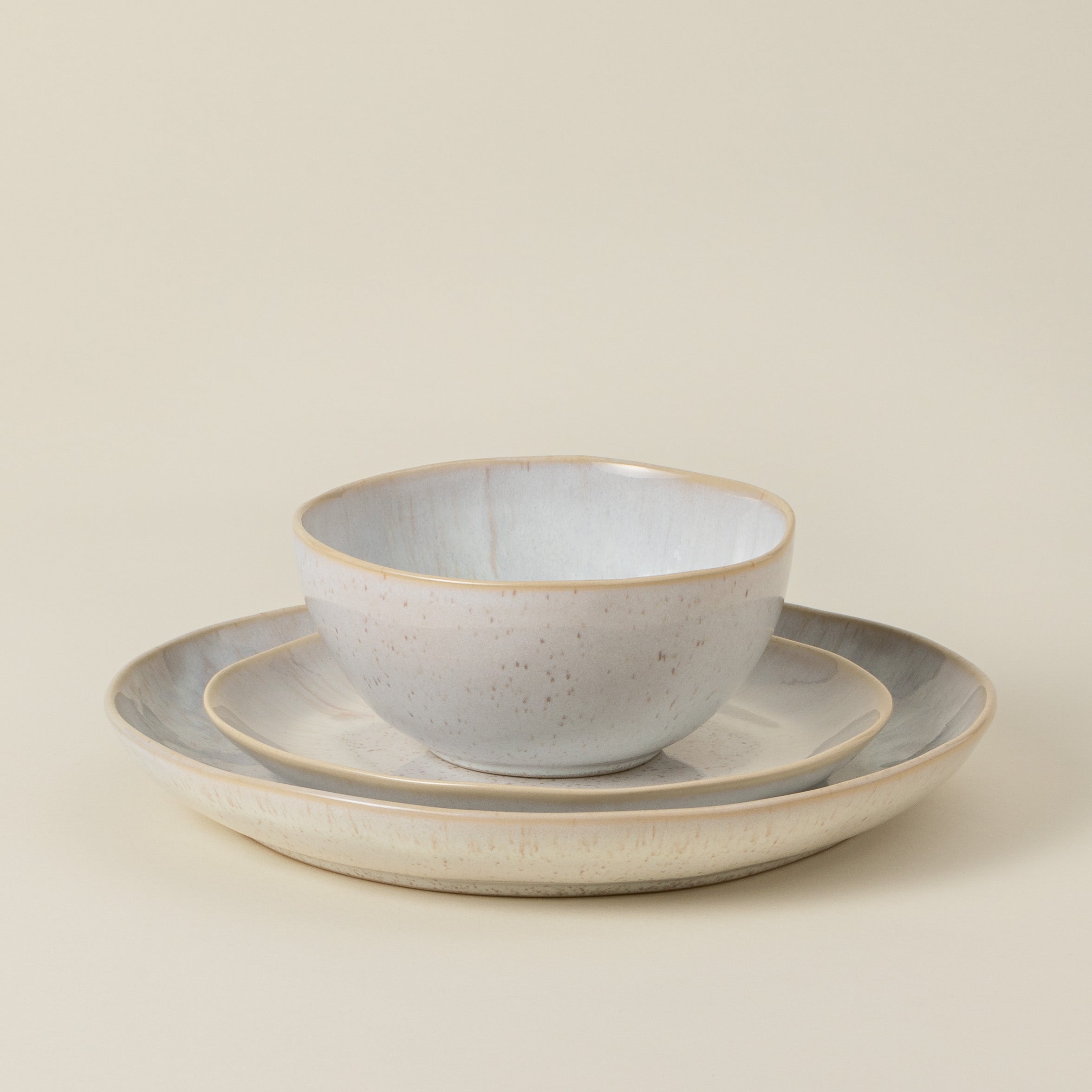 O vidrado reativo, aplicado durante o processo de cozedura, desenvolve padrões e tonalidades exclusivas em cada peça. Este processo artesanal confere uma individualidade ímpar a cada item, garantindo que, embora parte da mesma coleção, nenhuma peça seja igual à outra.