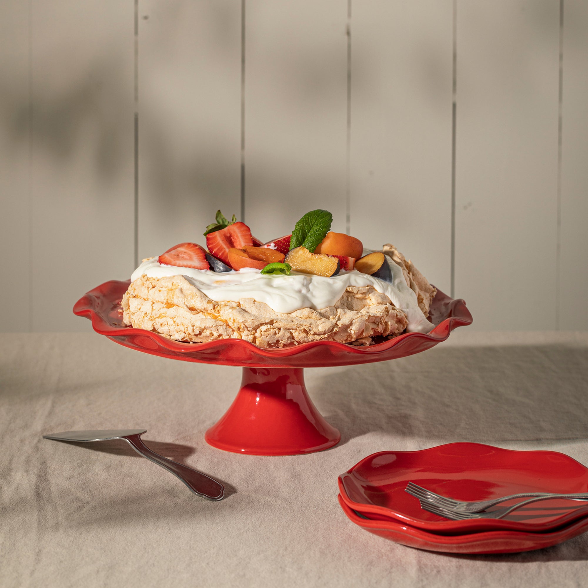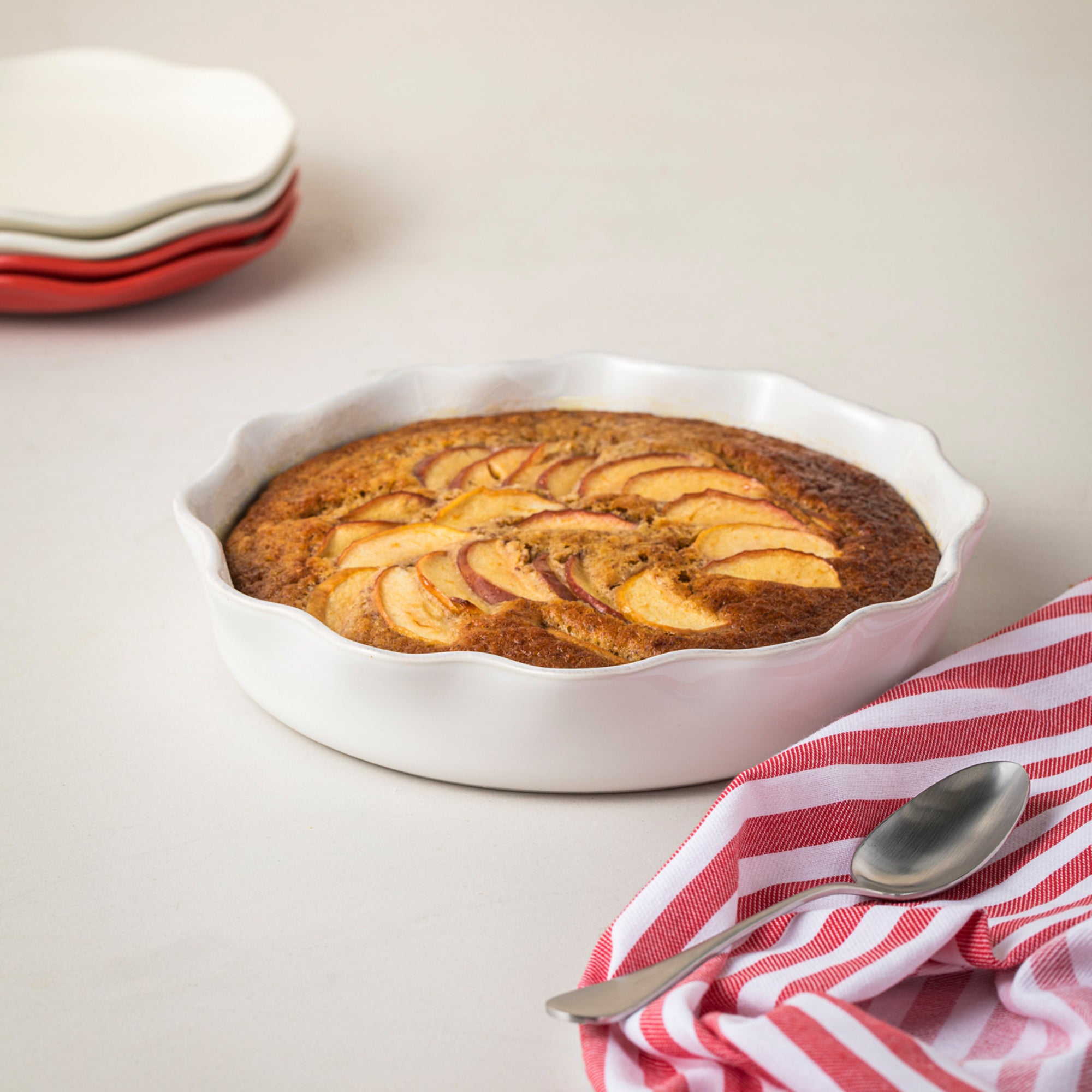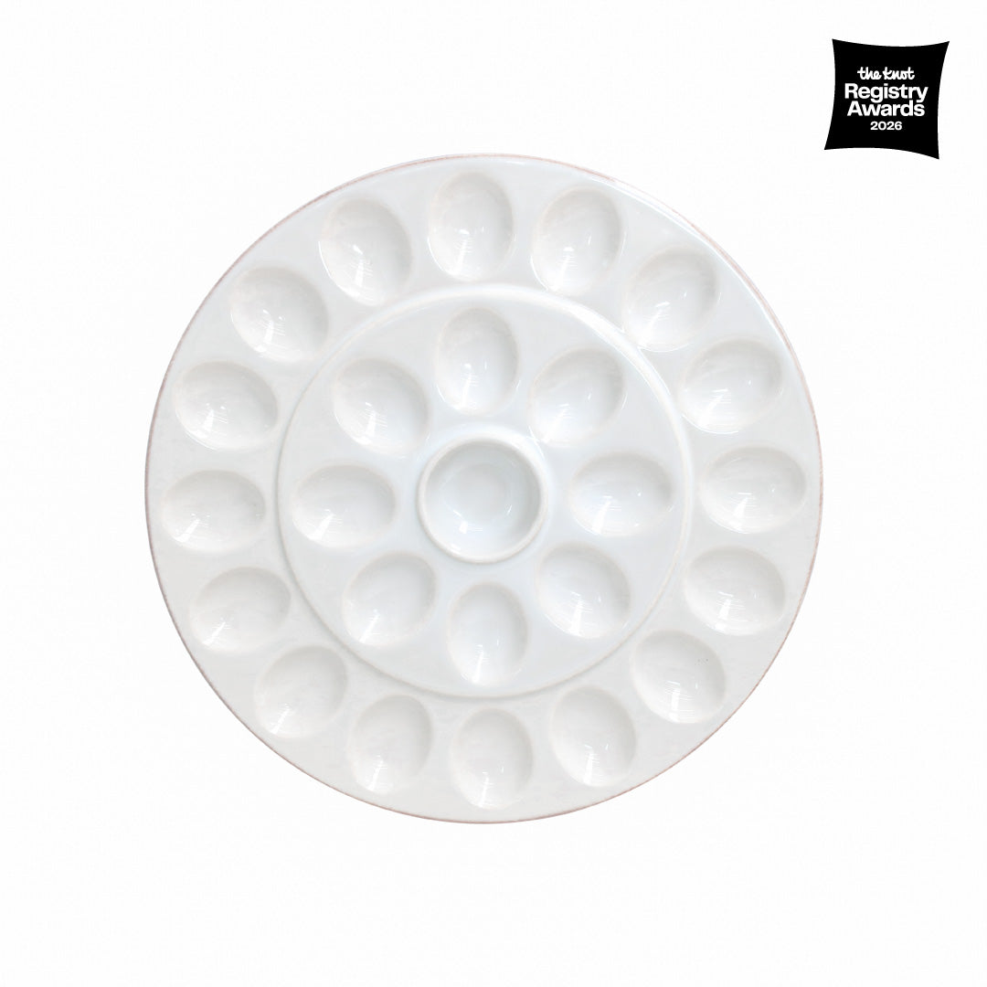 Disponível nas cores branco, creme, cinza, azul robins egg e vermelho clássico, a coleção Cook & Host apresenta uma gama versátil de peças para cozinhar e servir. Inclui travessas de forno, pratos para tartes, pratos para aperitivos e pratos com pé, tornando-a a escolha perfeita para qualquer anfitrião e amante de festas.