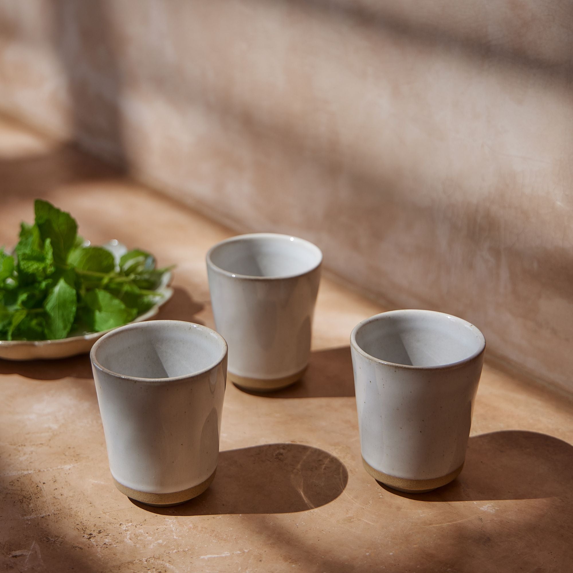 Os pratos da Marrakesh são caracterizadas pelas suas ondas e texturas que lembram formas florais delicadas. A combinação de superfícies arenosas sem vidrado com vidrados brilhantes e pontilhados proporciona um contraste visual e tátil que captura a essência dos mercados de Marrakesh. O exterior sem vidrado de cada peça destaca-se como um elemento diferenciador da coleção.