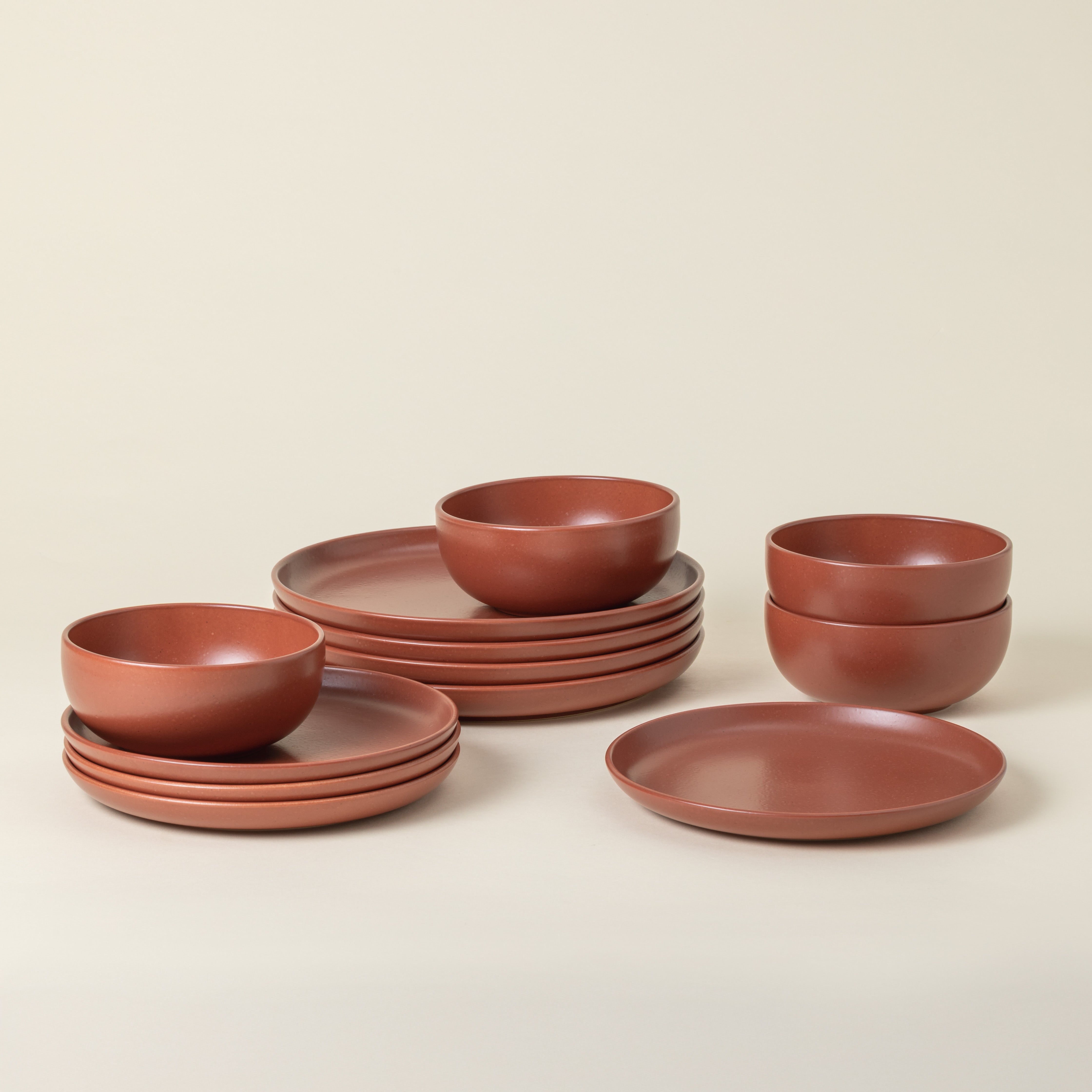 O Set 12 Peças de Mesa com Taça, acabado à mão em grés fino, é ideal tanto para o uso diário como para refeições descontraídas.