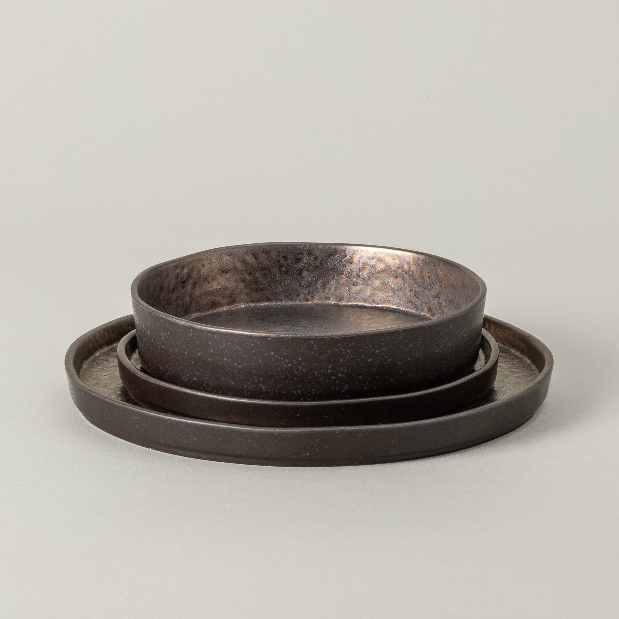 As peças em grés fino da coleção Lagoa Metal suportam variações entre -20ºC e 250ºC (0ºF a 500ºF), com variação máxima aconselhada de 180ºC (350ºF).