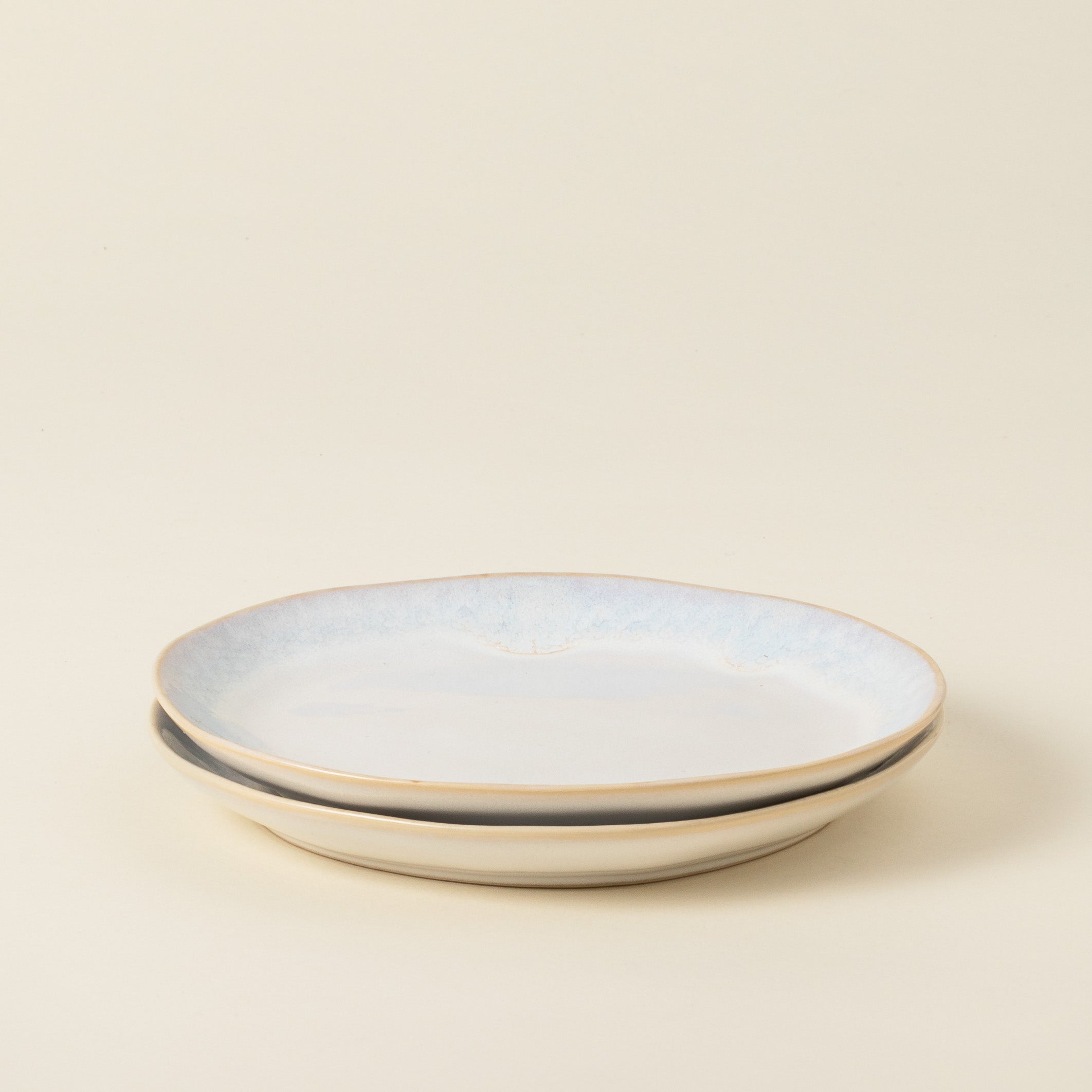 Com formas orgânicas e um vidrado reativo em tonalidades de branco e azul,flui suavemente pelos lados, proporcionando um acabamento único a cada peça.