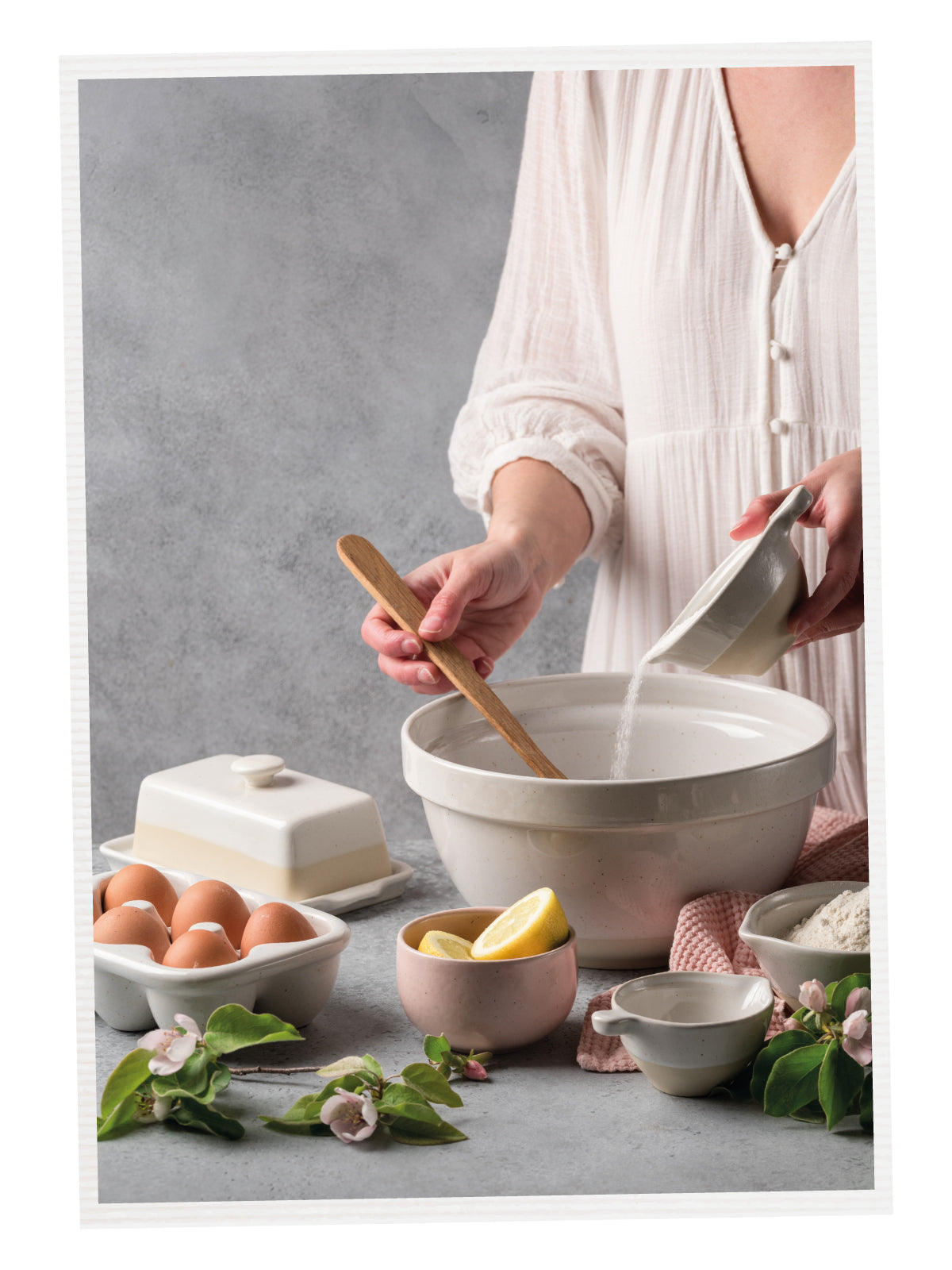 Corte e sirva em pratos Pacifica Marshmallow, que combinam na perfeição com a Primavera.