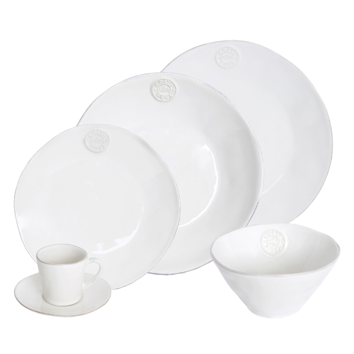 O Set 30 Peças de Mesa com Chávena e Pires de Café faz parte da icónica coleção da COSTA NOVA, apresentando linhas orgânicas e produzido em grés fino. Cada peça exibe vidrados translúcidos que destacam o símbolo emotivo da marca em relevo, garantindo a sua singularidade.