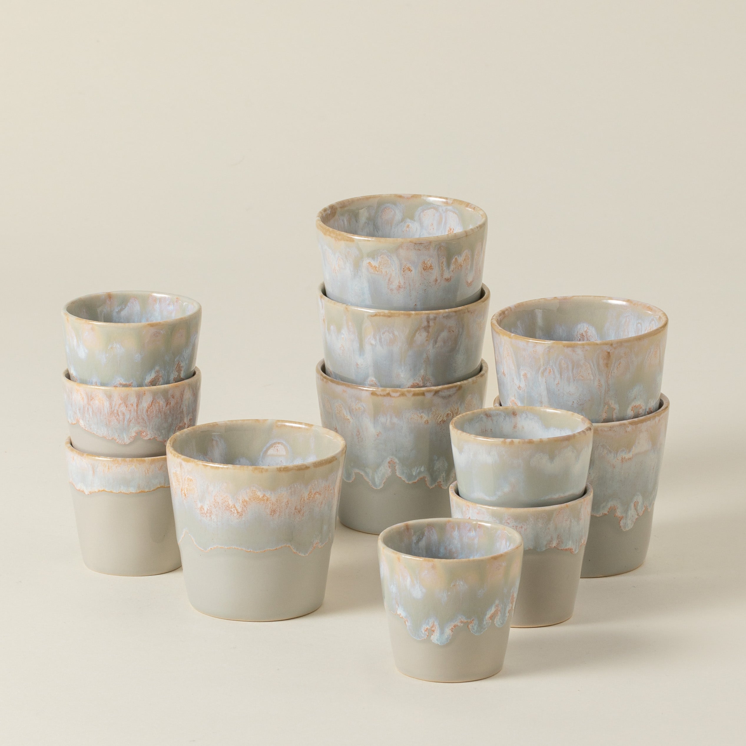 O set de 12 copos Espresso e Lungo da coleção Grespresso inclui 6 copos Espresso e 6 copos Lungo, todos na cor cinza.