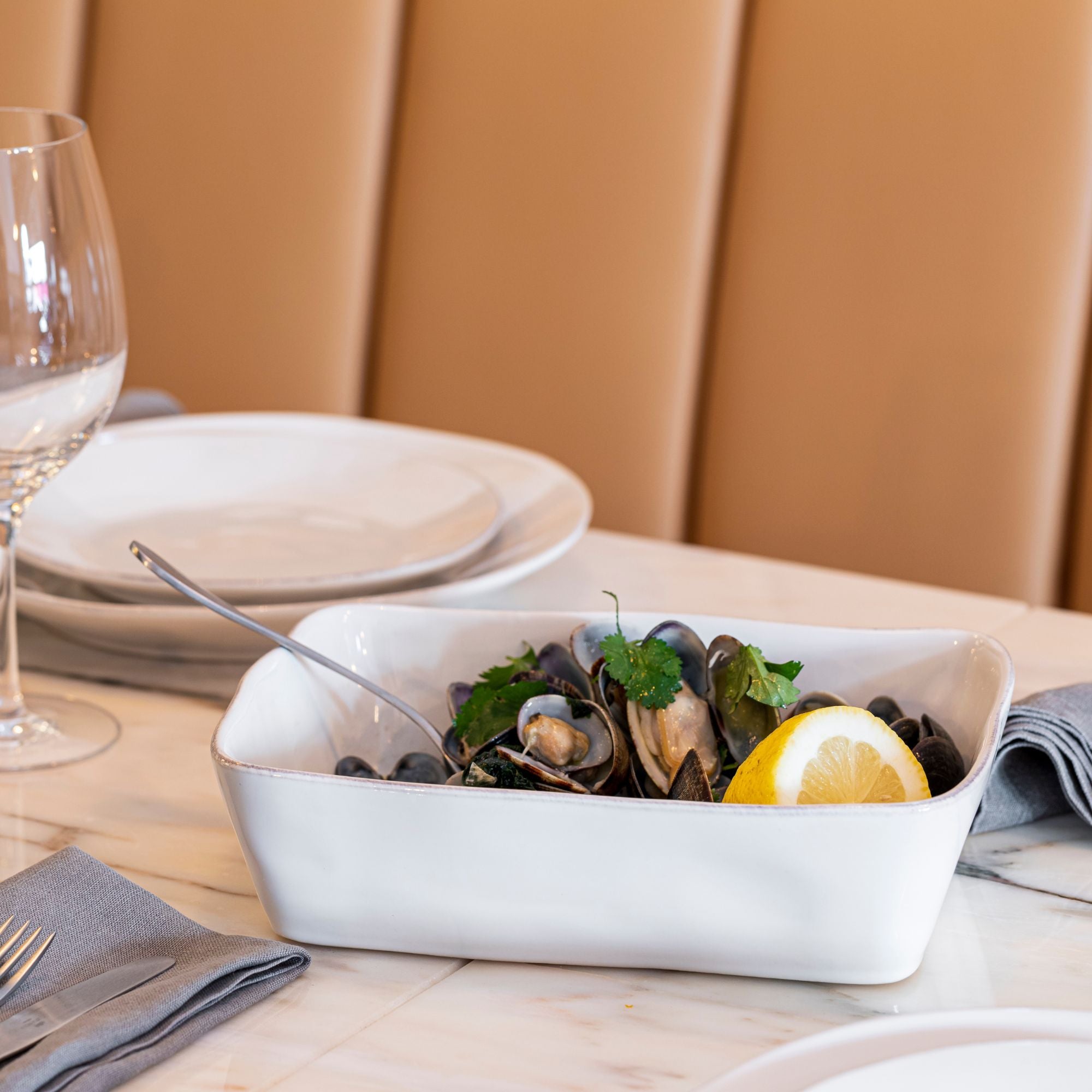 Fine stoneware pieces are highly resistant to thermal shock, withstanding variations between -20ºC and 250ºC (0ºF to 500ºF). Maximum recommended thermal variation is 180ºC (350ºF).